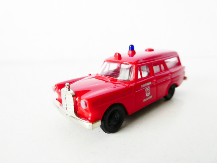 - H0 BREKINA Požární vozidlo Mercedes 190 Feuerwehr Frankfurt TOP STAV