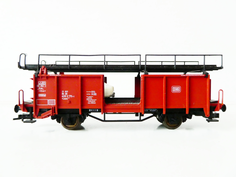 H0 FLEISCHMANN 5244 Nákladní vůz na přepravu automobilů 21 80 433 2 711-1 DB s jedním osobním automobilem PĚKNÝ STAV
