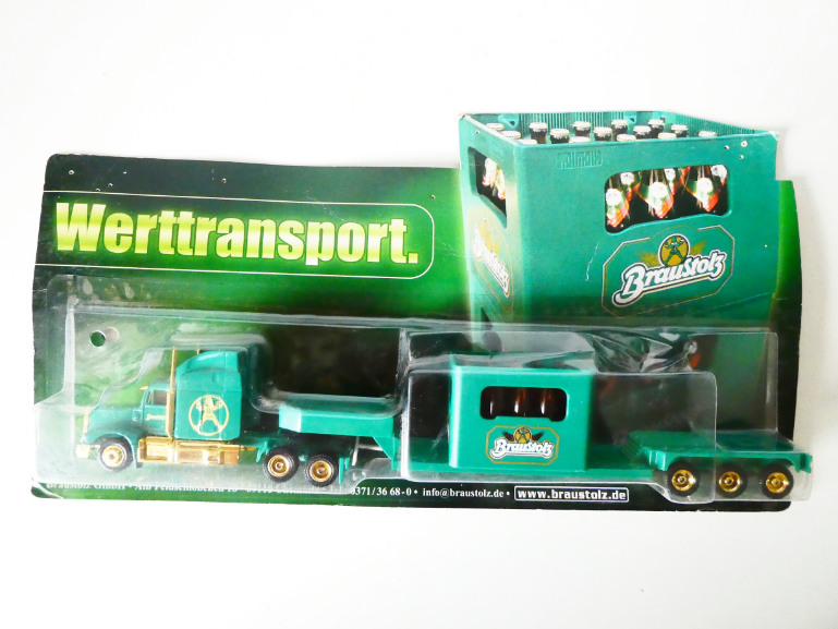 - H0 GRELL Nákladní automobil s návěsem pivovar BrauStolz s nákladem velké přepravky s pivem NOVÉ orig. zabalené