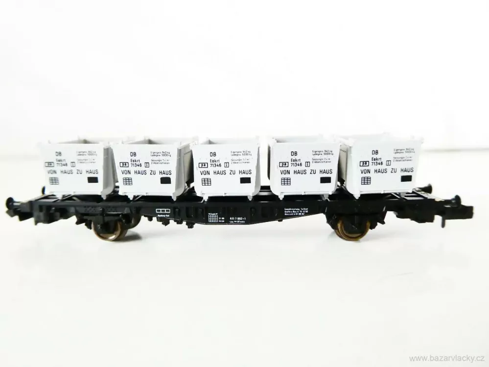 N FLEISCHMANN 8231 K Nákladní kontejnerový vůz s 5ti kontejnery VON HAUS ZU HAUS 21 80 411 7 882-1 DB TOP STAV NEPOUŽITÝSkladem 1 ks499 Kč/ ks