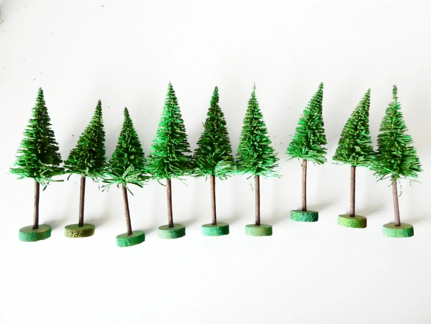 Strom jehličnatý s podstavemi - 9 ks ( 12 - 14 cm )Skladem 1 sada199 Kč/ sada